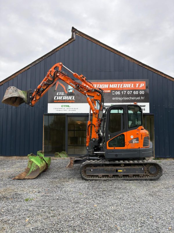 Loue Doosan DX85R pelle de 9/10 tonnes attache rapide hydraulique 280€ht journée 8h